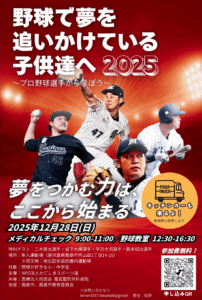 このたび2025年12月28日に「野球教室(野球で夢を追いかけている子供達へ ~プロ野球選手から学ぼう~ 2025)」を開催する運びとなりました。