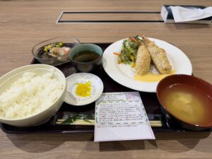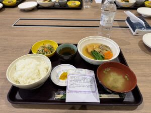 到着後には、公認スポーツ栄養士・管理栄養士の長嶋智子さんが考案された入院食をいただきました。彩りや構成に配慮された食事からは、「食事は見た瞬間から考え、感じながら食べるもの」という水谷羊一先生のお考えが現場に深く根付いていることを実感しました。
