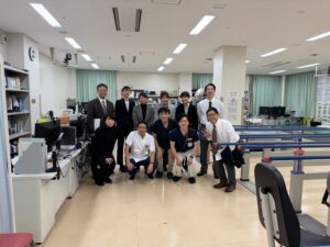 2日目午前中は、秋田大学医学部附属病院にてリハビリテーション研究について学ばせていただきました。リハビリ部技師長の畠山先生より、電気刺激による筋研究や、重心動揺計を用いた坐位姿勢評価など、工学部・企業との共同研究を含む先進的な取り組みをご紹介いただきました。実際に体験させていただく中で、姿勢制御や体幹安定性評価の新たな可能性を実感しました。